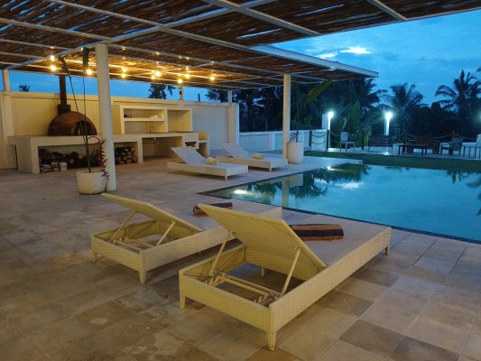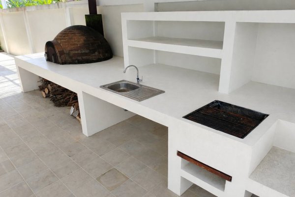 - Outdoor kitchen with BBQ, pizza oven and plancha