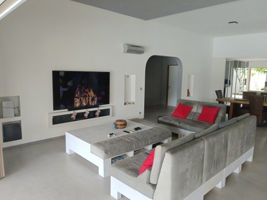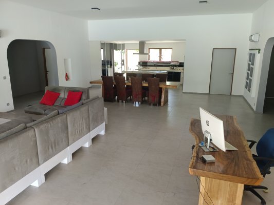 - Large living room of 105 m² with a 5.2 m wide sliding glass opening